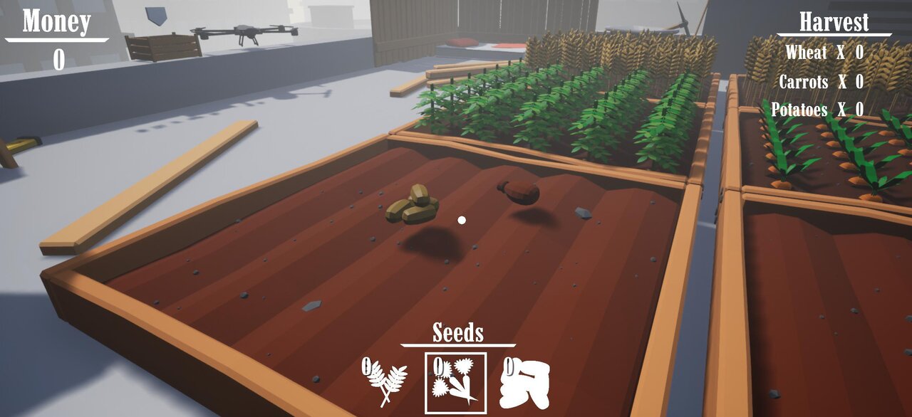 Water, plant and harvest your crops in a seemingly desolate high rise city. Sell your harvest to customers with help a handy drone and don't forget check the corner of your eye for what's lurking in the shadows.