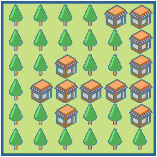 This is Tree House, a game where you have to build your houses across the whole of the woodland. Clicking on a tree will convert it to a house, however the surrounding houses and trees will also change, presenting you with a rather puzzling problem.