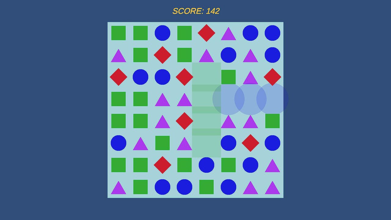 3 - the matched shapes are vanishing and turn into score, shapes from above slide down and new shapes are added.