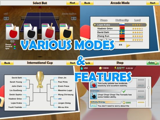 Virtual Table Tennis™ is the only one based on 3D PHYSICS and supported ONLINE MULTIPLAYER Table Tennis game in the App Store.