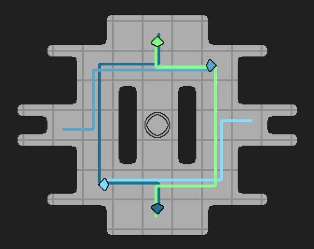 Wires is a small puzzle game developed for Weekly Game Jam 148, with the theme of mirrors. You control a specific node, whilst other nodes mirror and rotate your input, as you attempt to get them all to their goal.