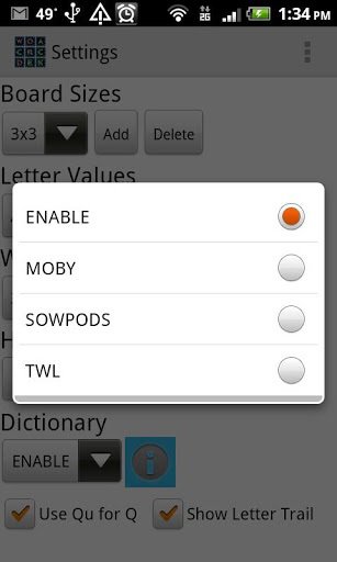 - Choose dictionary (ENABLE, SOWPODS,TWL, MOBY)